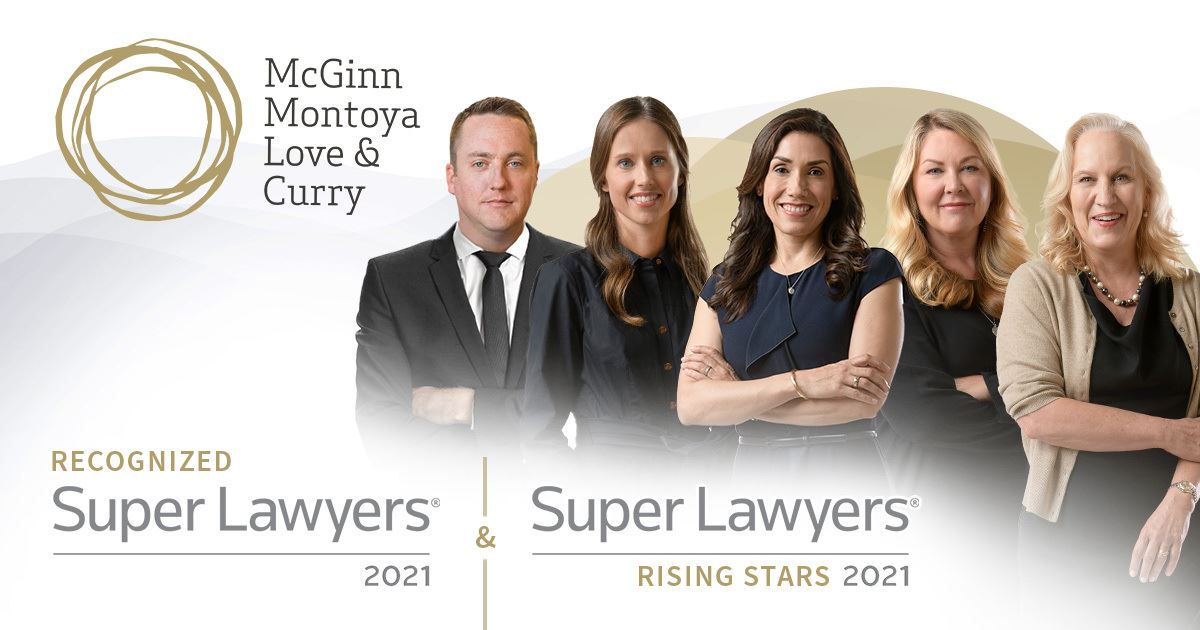 At McGinn Montoya Love Curry & Sievers PA, our legal staff strives to use the law for the good of the people; thus, we are committed to always fighting on the plaintiff’s side against the careless party that harmed them, no matter whether that was through negligence or another wrongful act. For their hard work, dedication, and legal skill in this regard, four of our attorneys have been selected to 2021 Super Lawyers® and another has obtained 2021 Rising Stars recognition.
